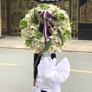Những vòng hoa tang lễ đẹp, trang trọng chia buồn với gia đình người quá cố. Như một lời tiếc thương vô hạn mà không một ngôn ngữ nào có thể diễn đạt hết thành lời. Với thông điệp “nghĩa tử là nghĩa tận”.